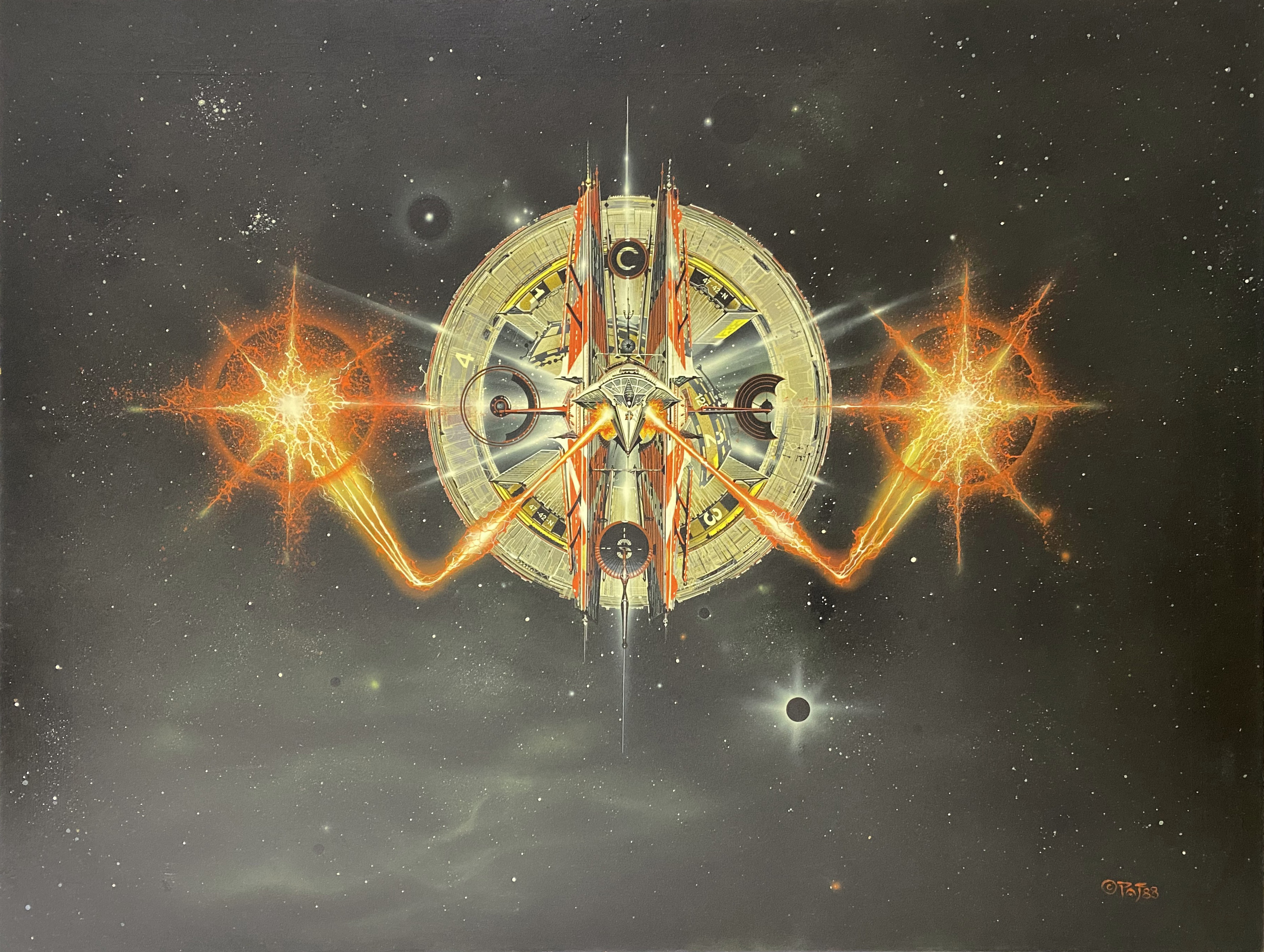 With all of Peter’s exclusive game box art commissioned between 1988 and 1992, his game catalog represents just a small sliver of his professional career, both temporally and in volume. The Internet Speculative Fiction Database (ISFDB) has recorded an exceptional list of Peter’s book illustrations spanning more than 20 years. Beyond his game catalog and deep oeuvre of book art, Peter has done work for film posters and advertising in addition to contributions to many BBC TV and commercial TV programs and projects.