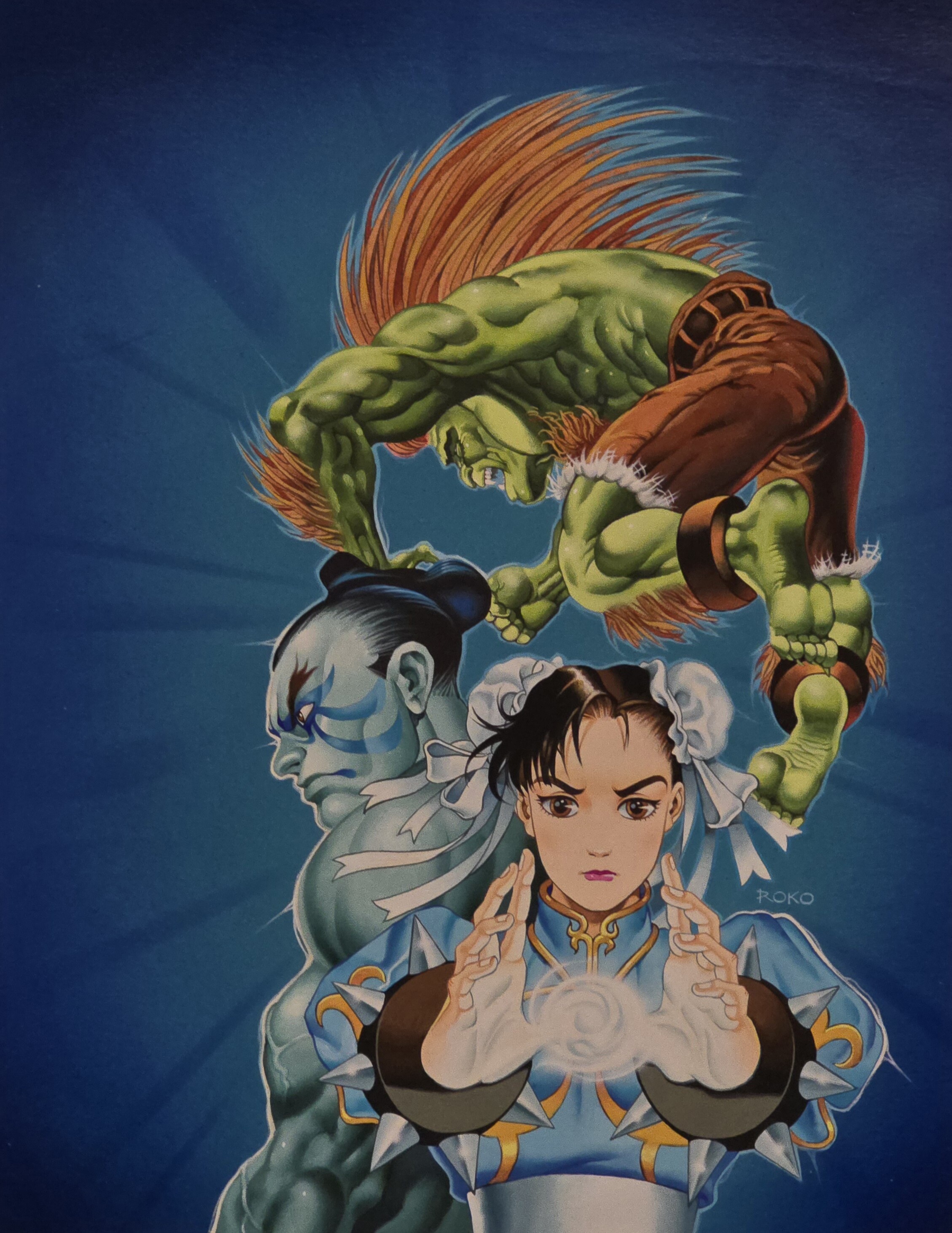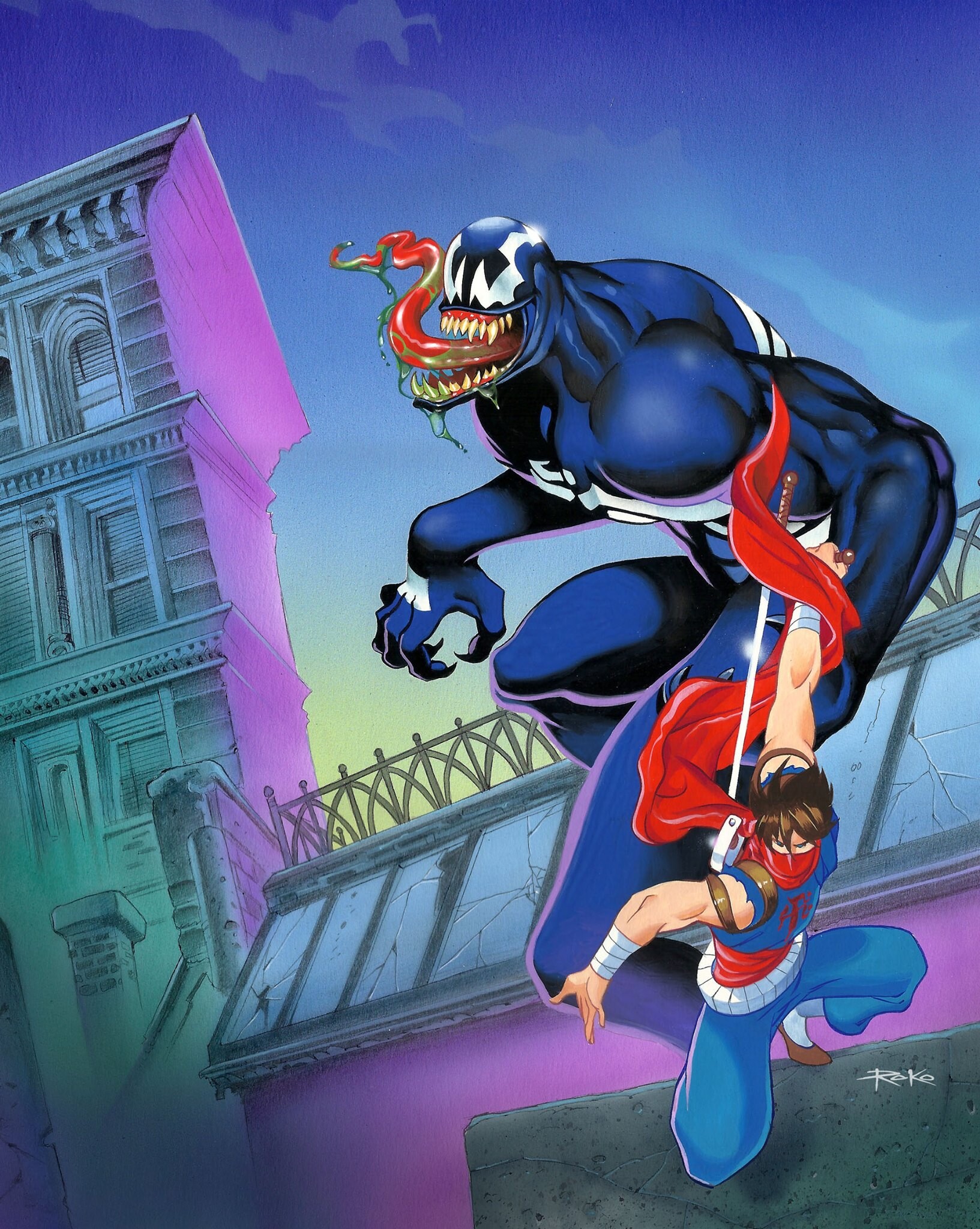 Roko is the pseudonym of Brazilian artist Osnei Furtado da Rocha. Osnei works in two distinct styles, signing separately for each: younger, more cartoon-styled works and projects for children are signed “Osnei,” while illustrations for a more adult audience are signed “Roko.” Beginning in 1993, Oseni (as Roko) began approximately a 10-year run working on video game magazine cover art for Brazilian publisher Nova Cultural.